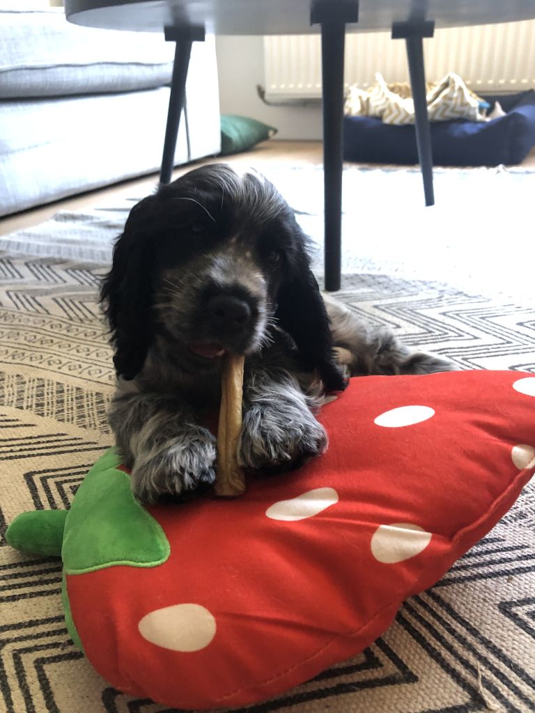 Hij moet alles nog leren dus hij is nog niet zindelijk en hij vindt het nog erg interessant om z’n tandjes overal in te zetten. We zijn ermee bezig zullen we maar zeggen😅 Ook heeft hij nog veel slaap nodig.