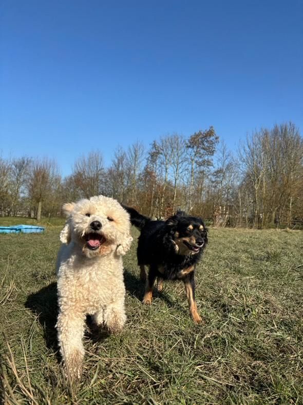Boef en ik zouden het leuk vinden als we hier mensen leren kennen om evt samen te gaan wandelen, Boef maakt redelijk makkelijk vriendjes met andere honden, al vind hij het baasje ook wel interesant, want die hebben vaak iets lekkers bij zich.
