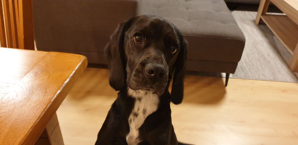 Het is echt een hele lieve hond en kan goed met mensen van alle leeftijden. In het begin erg enthousiast en kan best druk zijn, maar enkele minuten later staat hij kalm te vragen om aandacht.