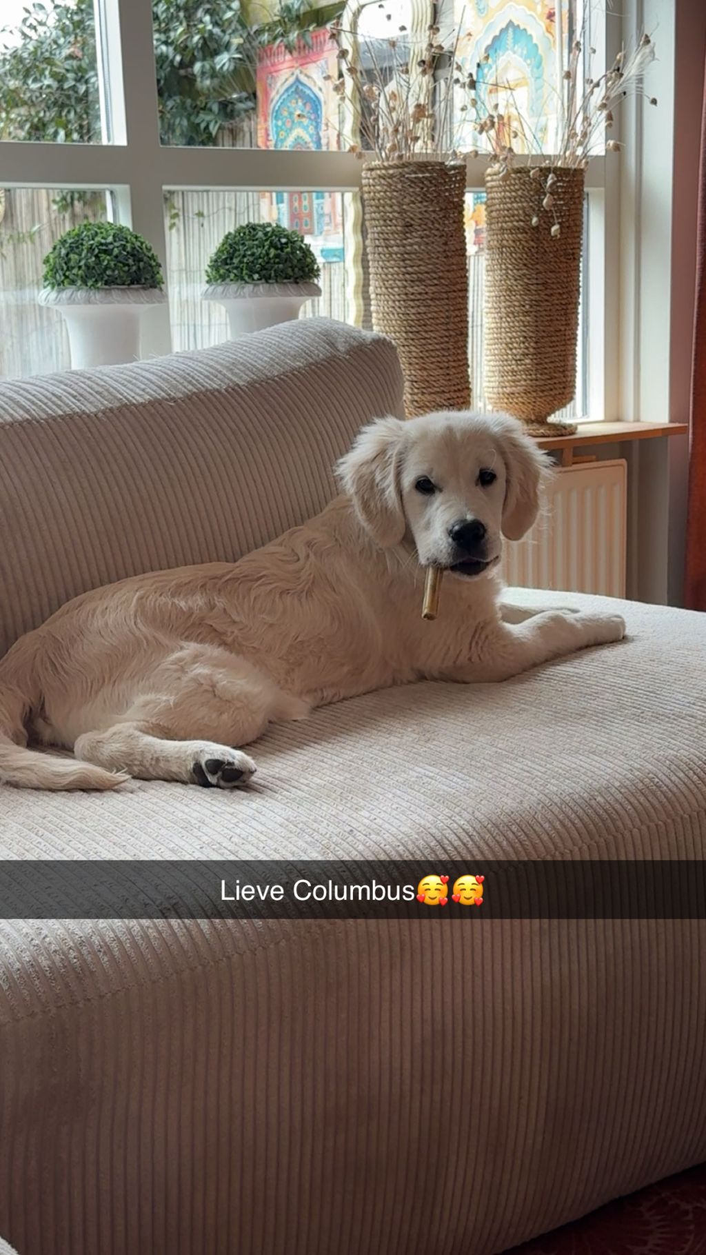 Columbus is bijna een half jaar oud en een echte Golden Retriever in hart en nieren: zachtaardig, lief en een echte allemansvriend. Hij geniet enorm van aandacht, knuffels en gezelligheid om zich heen.