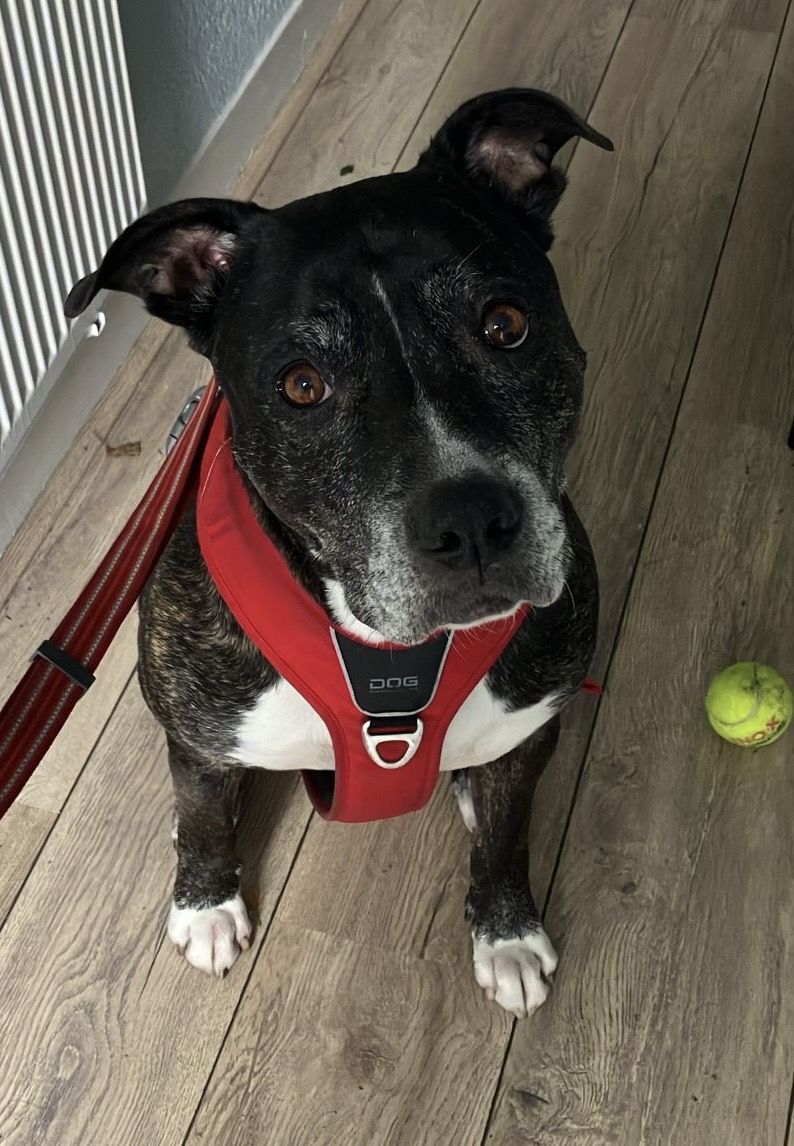Hi, ik ben Daisy! Ongeveer 9 jaar oud. Ik hou van lange wandelingen. Ik ga goed om met kinderen en katten, maar ik hou niet zo van andere honden.