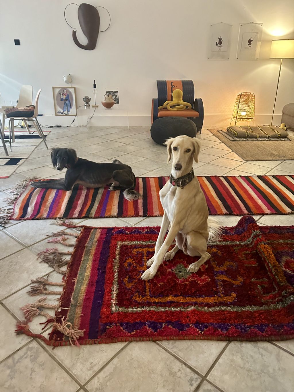 Ik verhuis aan het einde van de zomer van Koeweit naar Wissenkerke, samen met mijn twee geweldige saluki's. Omdat ik een fulltime baan heb, zoek ik iemand die ze doordeweeks tussen de middag even gezelschap houdt/een kort rondje met ze loopt. Dat laatste hoeft misschien niet eens want er is een grote tuin. En het zijn nogal luie honden (als ze niet full speed rennen, waar ik zelf voor zorg in mijn vrije tijd). Naast lui zijn ze eigenwijs, grappig, soms slim, soms dom, soms klunzig, vaak elegant. Thalj is een grote knuffel, Dakhan een zachtaardige clown.
