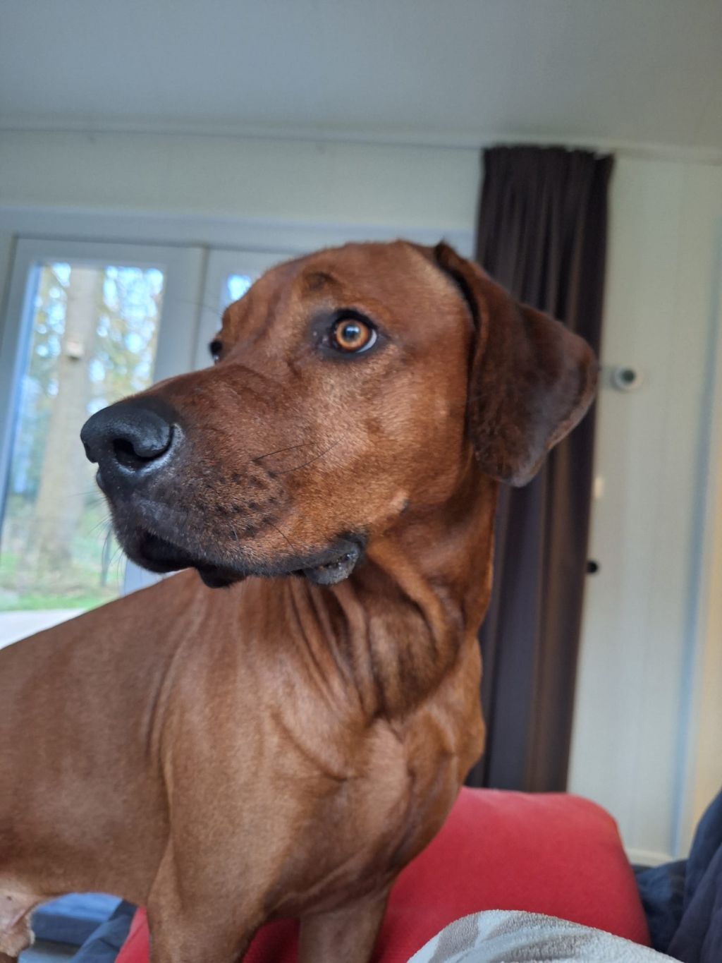 Maak kennis met Dembe, onze gezellige Rhodesian Ridgeback. Dembe is een vrolijke reu die enorm geniet van gezelschap en beweging.