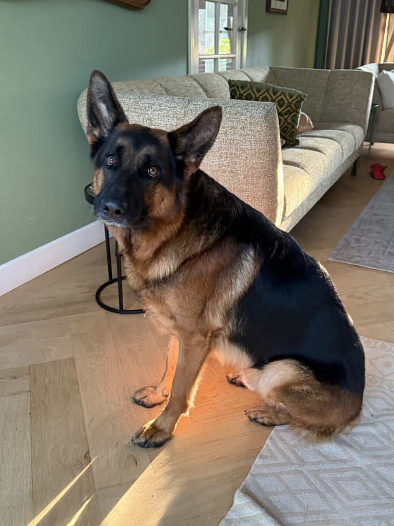 Charlie is een echte goedzak en als hij je eenmaal in zijn leven heeft gesloten, dan ben je zijn beste vriend…. Charlie is super enthousiast en is dol op aandacht, knuffelen en vooral ook spelen.. Als je met Charlie gaat wandelen dan zul je merken dat Charlie graag de richting bepaald, maar dit is niet altijd de juiste richting. Je moet daarom wel van enige daadkracht en sturing beschikken om deze Duitse Herder mee te krijgen. Als hij andere honden ziet, dan maakt hij zich graag klein om vervolgens als ze dichtbij komen te gaan staan. Daarbij wil hij enige dominantie uitstralen. Hij is lief tegen kleine honden, maar heeft een grote mond tegen grote honden die hem negeren. Ook houdt hij niet van scooters, fatbikes en maaltijdbezorgers…. Hou hem daarom goed in de gaten als er 1 in de buurt komt en hou de lijn goed vast. Van katten houdt hij niet of juist wel, want hij wil er graag achteraan rennen, hier telt dus ook hou hem goed vast. Charlie is sterk !!!