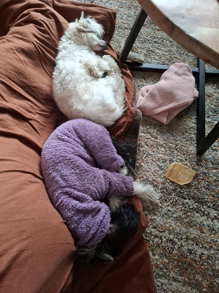 Dewi is 6 jaar en Ayu is 9 maanden. Het is een heerlijk stel samen. Dewi is een herplaatser en is niet altijd zeker van zichzelf. Dat heeft ze ietwat doorgegeven aan Ayu. Loslopen en luisteren gaat steeds beter. Alleen blijven en autorijden gaan prima. Wij werken allebei niet meer, maar soms is het fijn als we oppas voor onze hondjes hebben. Voor een dagje uit, of de aanstaande trouwdag van dochterlief, waarbij ook een overnachting hoort.