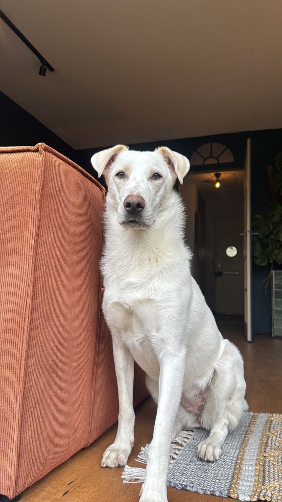 Hi, ik ben Ellie! Ongeveer 1 jaar oud. Ik hou van spelen met de bal, korte wandelingen en lange wandelingen. Ik ga goed om met kinderen, katten en andere honden