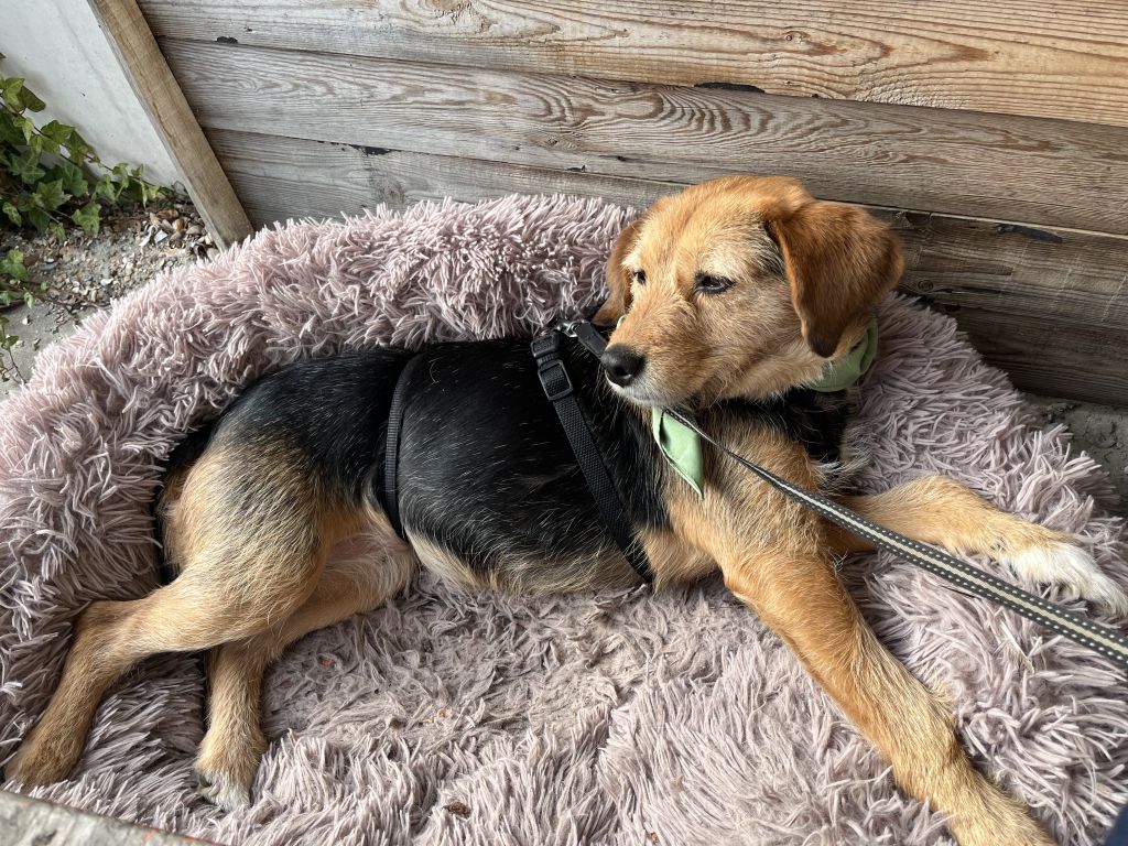 Hi, ik ben Fransje! Ongeveer 4 jaar oud. Ik hou van korte wandelingen en lange wandelingen. Ik ga goed om met kinderen, andere honden en katten