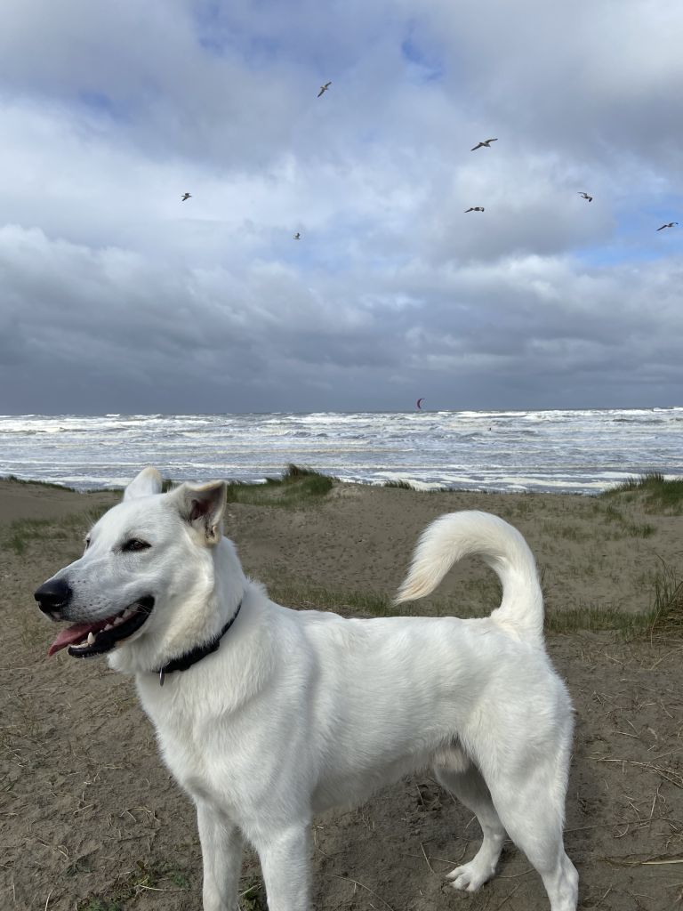 Guus is een enthousiaste hond, sterk, slim en leergierig. Guus heeft eigenschappen van de witte herder, heel alert, soms wat terughoudend zijn naar andere mensen als die van de Golden retriever, enthousiast naar mensen en honden toe gaan en het dan niet meer weten wat hij moet. Hij is lief naar mensen en kinderen, maar heeft ook duidelijke leiding nodig. Hij is dol op speuren en apporteren van de bal. Wij vinden het leuk als Guus ook door andere mensen wordt uitgelaten, naast de uitlaatservice. En laten wennen aan een gezin met kinderen, omdat we zelf binnenkort een kleinkind krijgen.