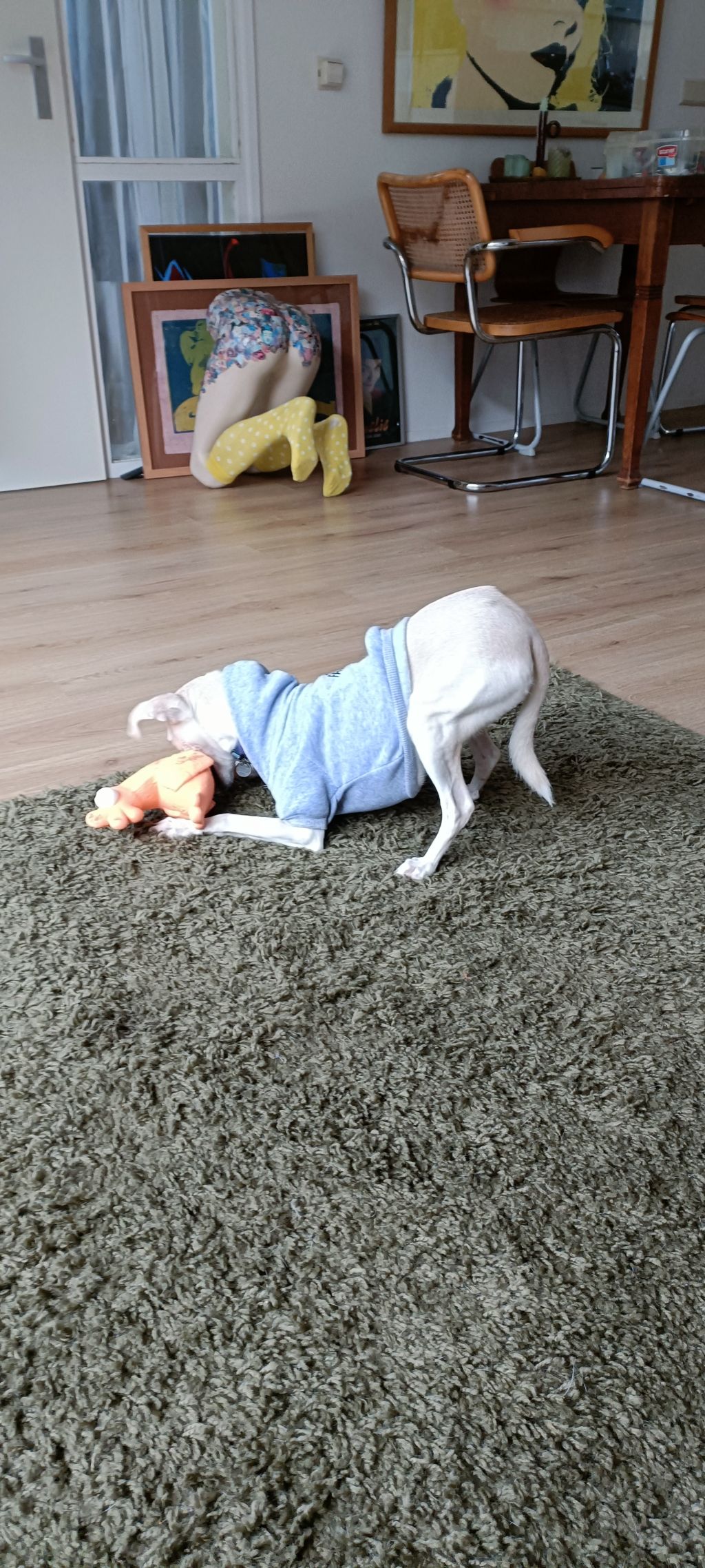 Ze kan absoluut niet los . Verder is het leven een feest met dit hondje