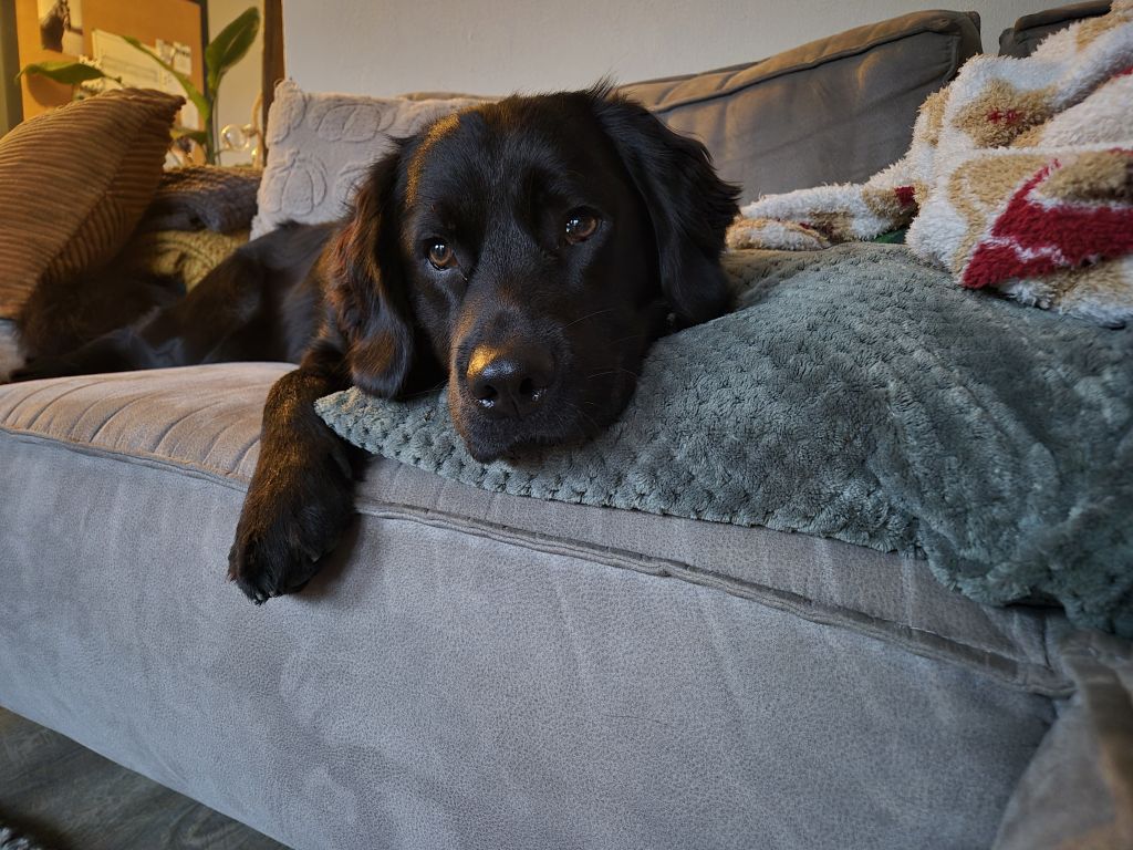 Holley is erg enthousiast, kinderen vanaf een jaar of 8 kent ze en vind ze leuk, kleinere kinderen vind ze vooral vreemd haha.. maar ze blijft lief. Met wandelen kan ze soms nog een beetje trekken als ze iets leuks ziet, haar oren doen het dan ook niet altijd even goed. Gelukkig is Holley een labrador kruising en doet ze veel voor een lekkere traktatie. Het andere deel van Holley is Friese stabij.