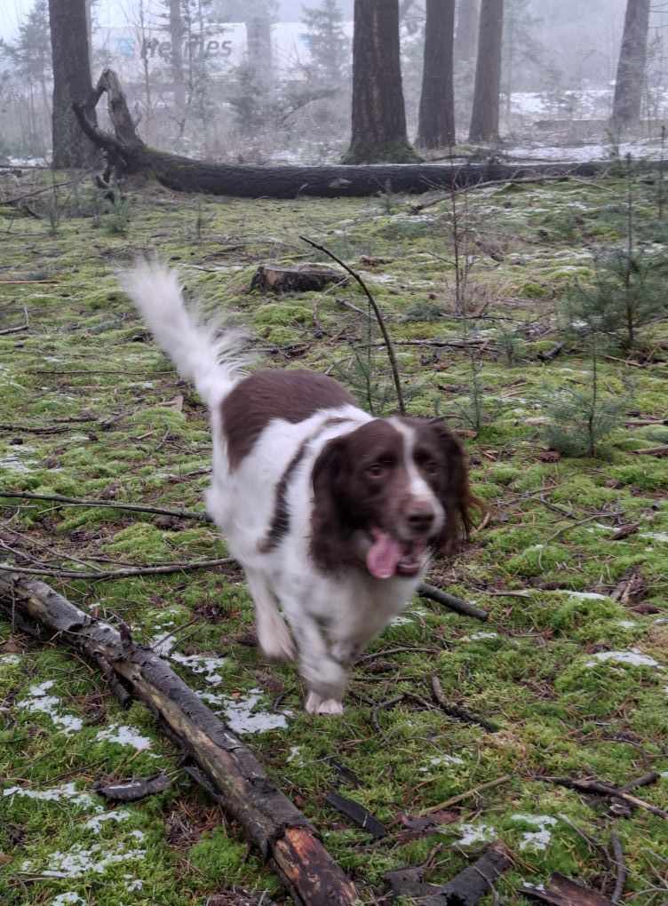 Jerry is een lieverd, al 11 jaar, maar is nog fit, loopt goed mee aan de lijn, en in het bos gewoon los...