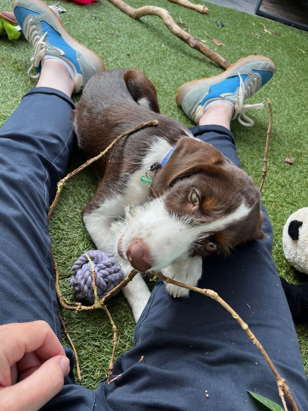 Jip vind alle andere honden leuk, vindt alle mensen leuk, houdt van spelen, rennen en graven. Aan de lijn (lang of kort) gaat prima, maar los bij JEKA is natuurlijk het mooiste.