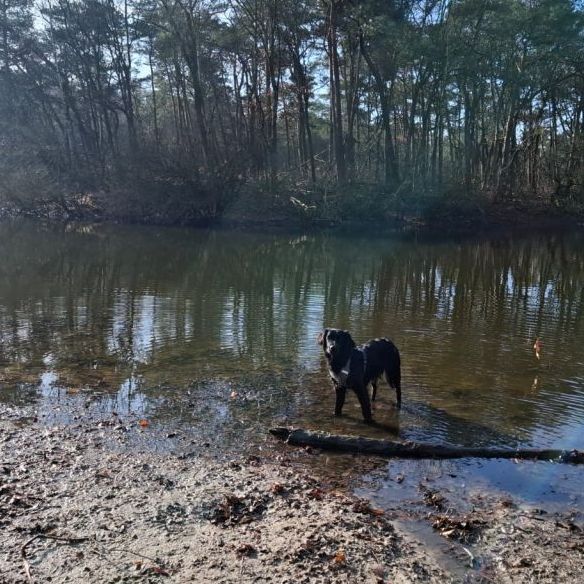 Juno vind het op straat nog erg spannend maar is dol op bossen en andere losloop velden.. Met kinderen en andere honden kan ze goed overweg, al is ze met de allerkleinsten soms wel wat enthousiast..