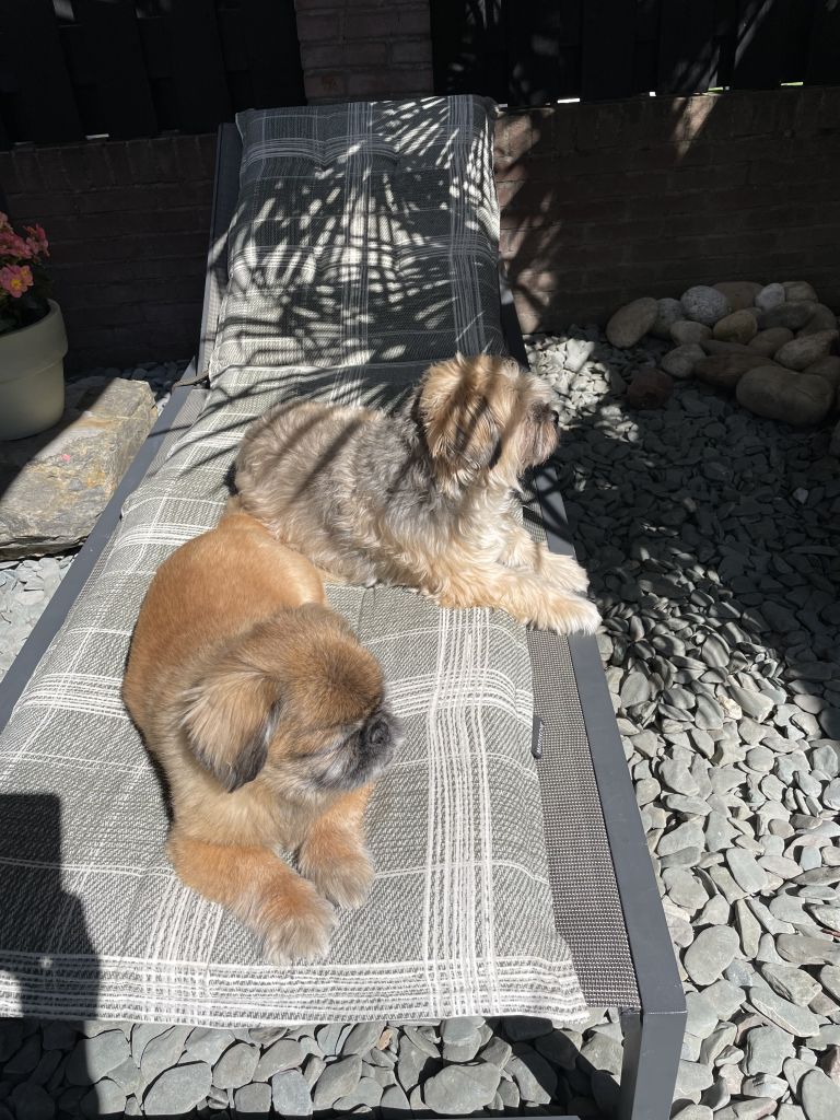 Zij worden niet uitgelaten maar gaan achter in de tuin omdat zij niet goed zijn met andere honden.