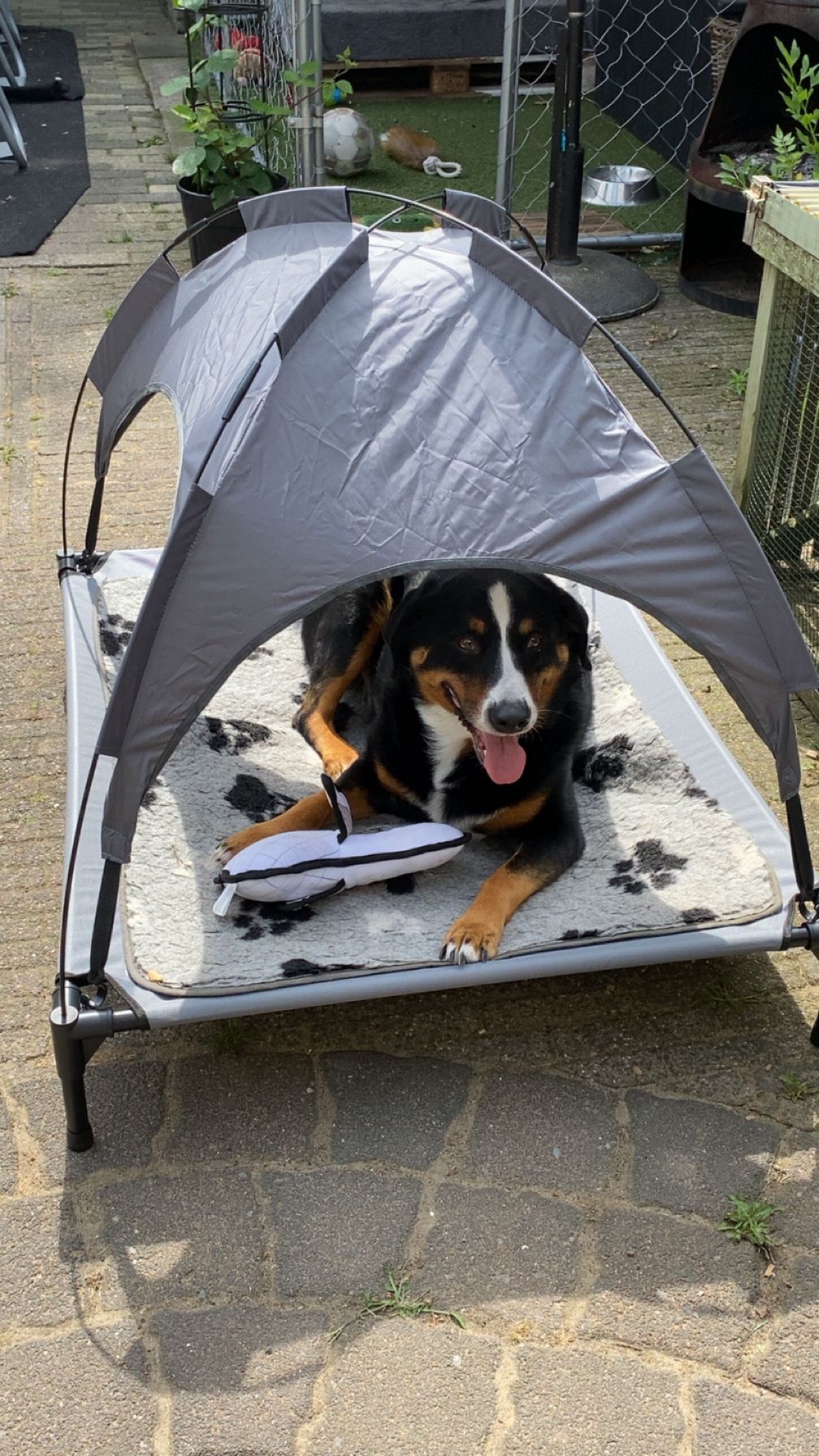 Hi, ik ben Loki! Ongeveer 3 jaar oud. Ik hou van spelen met de bal, lange wandelingen en korte wandelingen. Ik ga goed om met kinderen, maar ik hou niet zo van andere honden en katten.