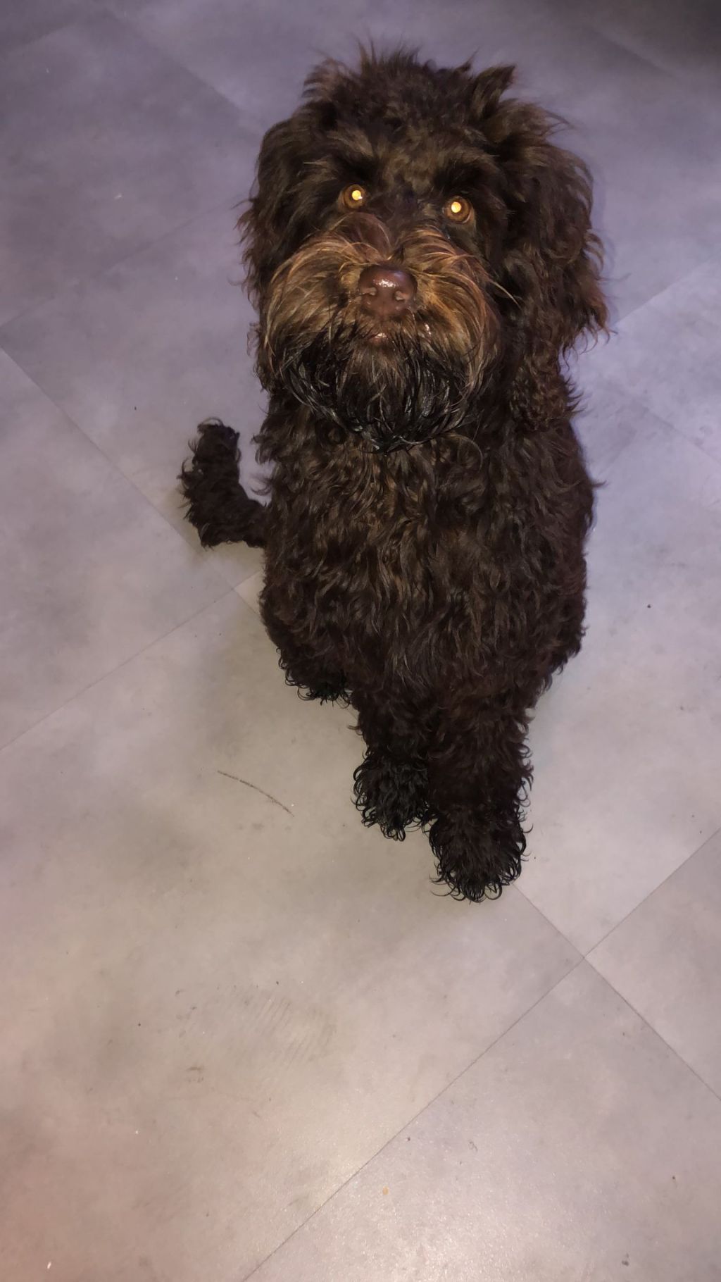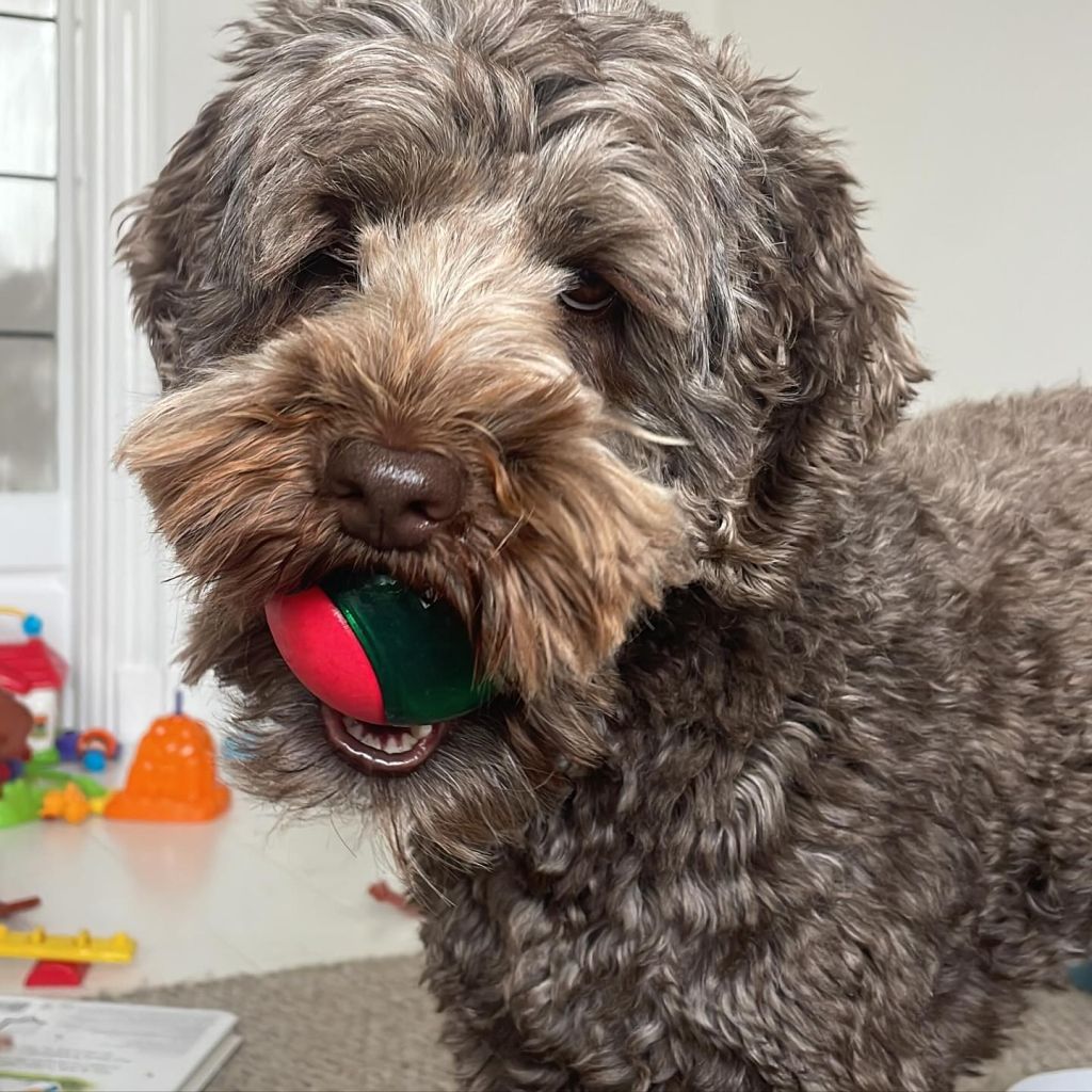 ze is een medium labradoodle maar ze is klein uitgevallen ze is ook maar 10 kilo.