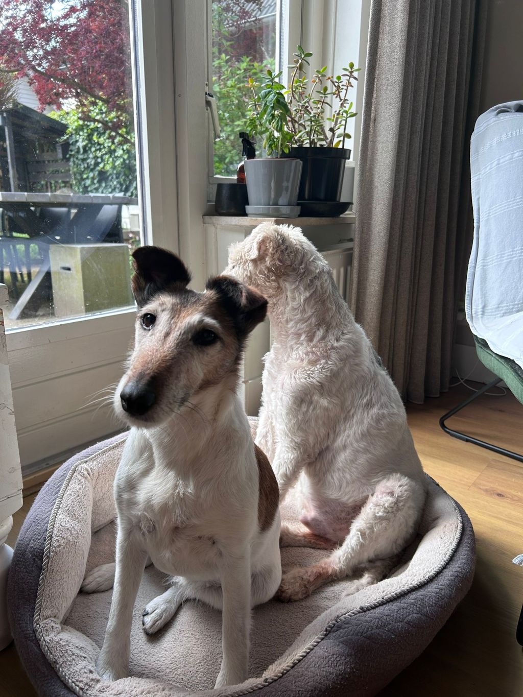 Lola woont samen met Max, een reu foxterriër van 14 jaar. Het energieniveau verschil is erg groot. Lola is altijd enthousiast voor alles wat haar afleiding geeft en ze maakt graag lange wandelingen. Max kan dat niet meer. Hun baasje is 2 jaar geleden onverwacht overleden daarom zijn we kortgeleden verhuisd eerst naar een tijdelijke woning en nu mist vooral Lola het een en ander. Best lastig voor mij om goed mee om te gaan, ook al omdat de honden zo verschillend zijn.