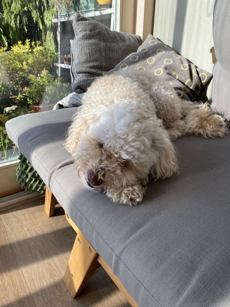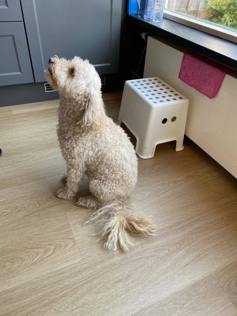 Simba is een erg lieve hond. Hij is een kruising tussen een poedel en een Maltezer maar zijn gedrag is wel echt poedelgedrag