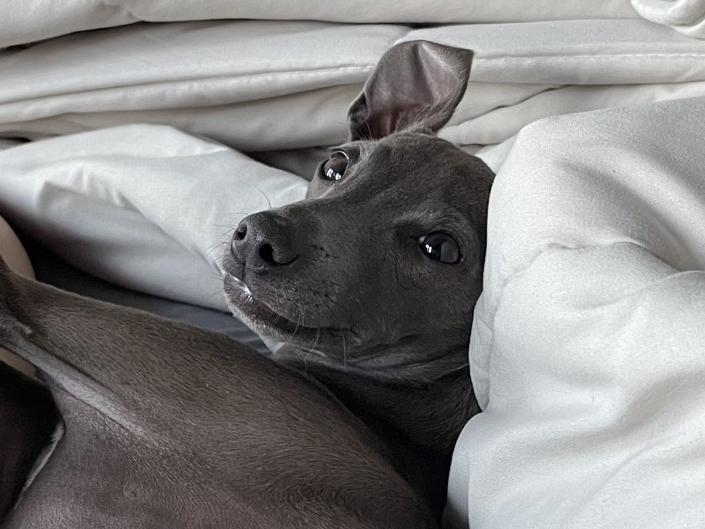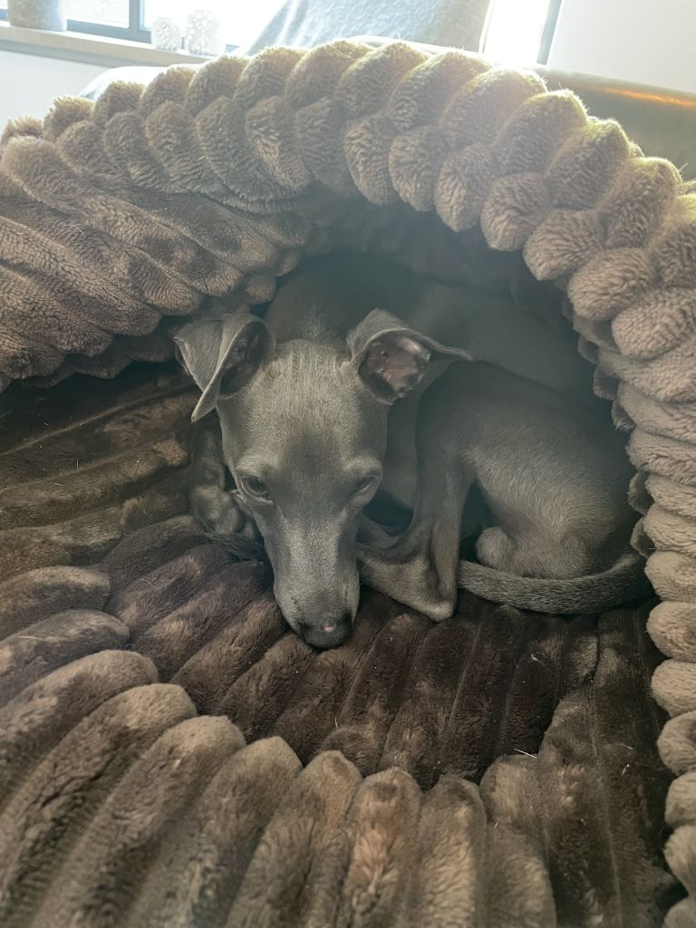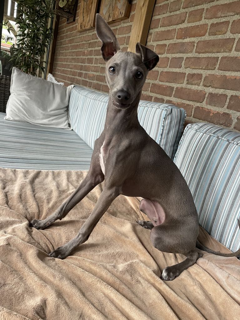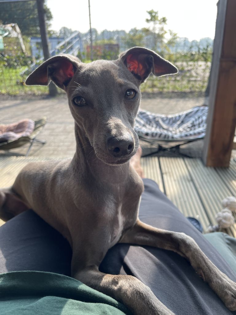 Lotus is een jonge, energieke hond en heeft veel behoefte aan gezelschap en wat beweging op dagen dat wij zijn werken. Hij is erg levendig en mag vanwege zijn jachtinstinct niet los lopen. Maar wandelen aan de lange lijn vindt hij heerlijk. Ook knuffelen en lekker bij je liggen zijn favoriete bezigheden. Daarnaast houdt hij ook van trekspelletjes met zijn knuffels.