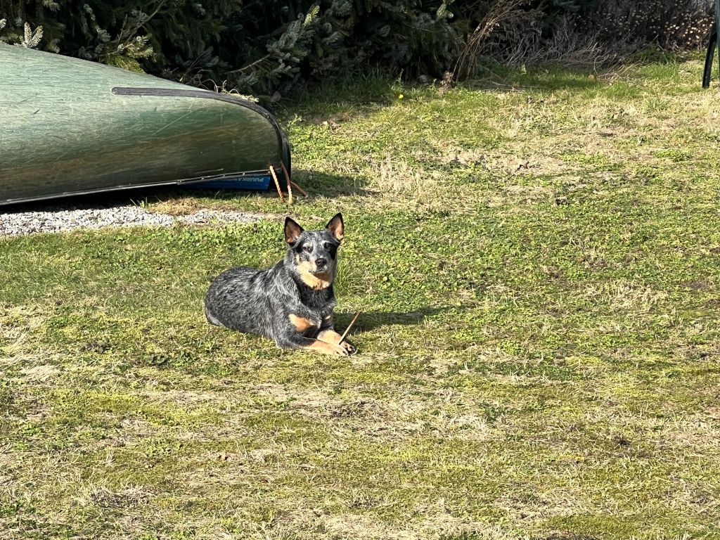 Dit is Louka, onze geweldige Australian Cattle Dog. Ze is lief, trouw en altijd vrolijk. Louka gaat graag met ons mee, of het nu een lange wandeling is of gewoon samen op pad. Ze kan heel goed loslopen en luistert ontzettend goed. Ze blijft netjes in de buurt en komt direct als we haar roepen.