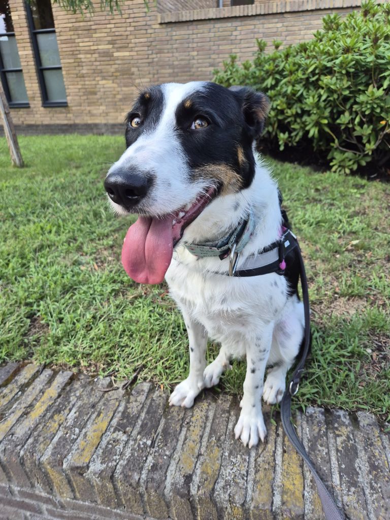 Luna is een meisje van 1 jaar (13 augustus 2024) kruising middelgroot die we hebben uit Spanje geadopteerd in januari 2025.
