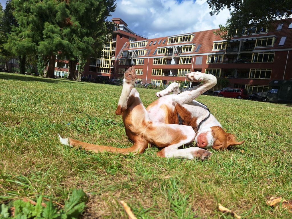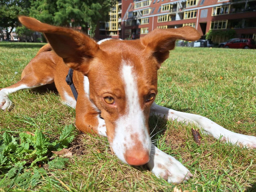 Maca is een enorm blij ei. Half wildebras die houdt van ravotten en keihard rennen, half prinses die het liefst bovenop jou met een massage in slaap valt.