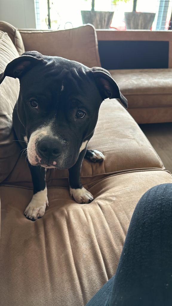 Macho is niet zomaar een hond. Macho is een echte persoonlijkheid op vier poten. Een stoere Amerikaanse Stafford met een vleugje bullie, maar laat je vooral niet misleiden door zijn gespierde uiterlijk. Achter dat brede koppie schuilt namelijk een enorme knuffelkont met een hart van goud.