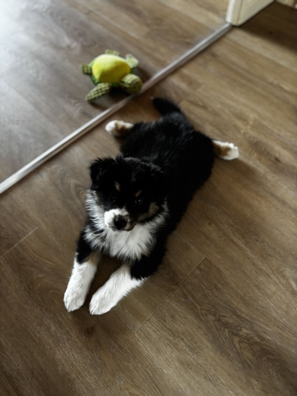 Mango is een aussie en heeft daarom veel aandacht nodig om haar zo goed mogelijk op te voeden en haar uitdaging te geven. Ze is lief, energiek, slim en leert snel.