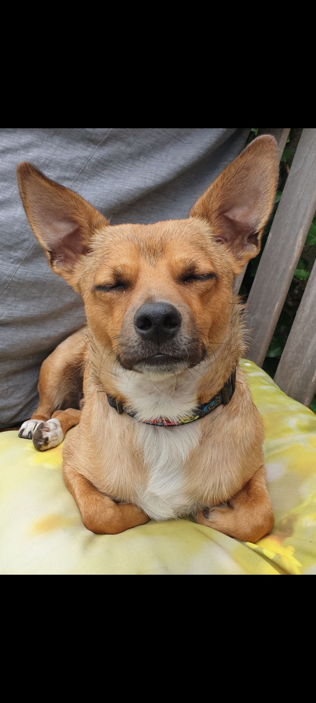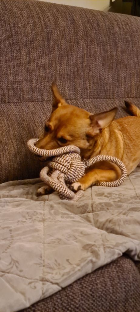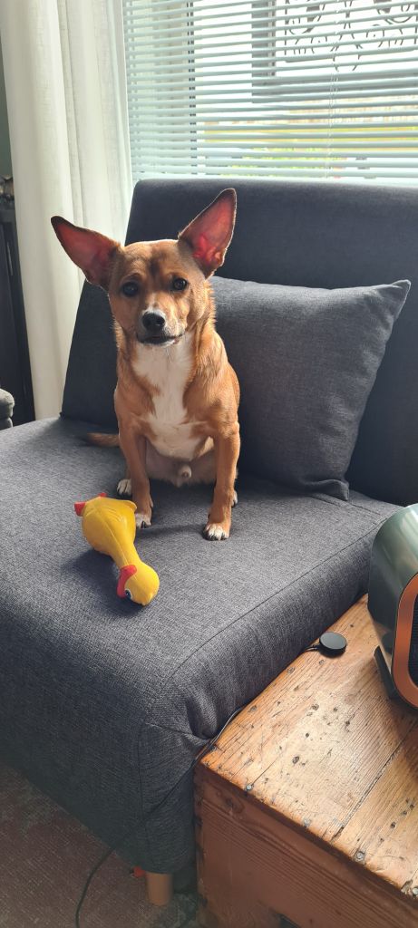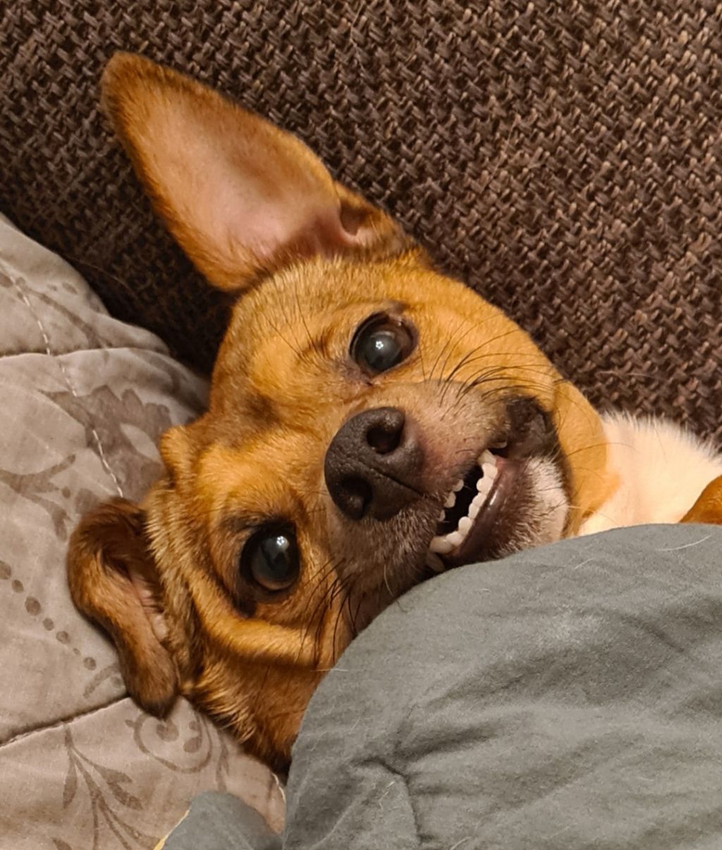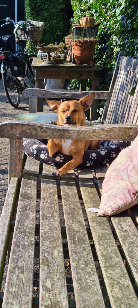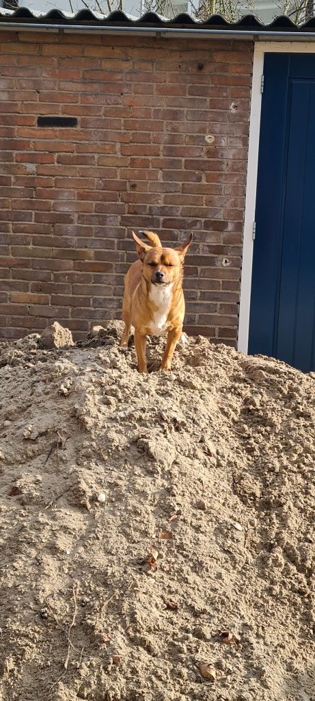 Hi, ik ben Churri! Ongeveer 6 jaar oud. Ik hou van korte wandelingen en lange wandelingen. Ik hou niet zo van kinderen, andere honden en katten.