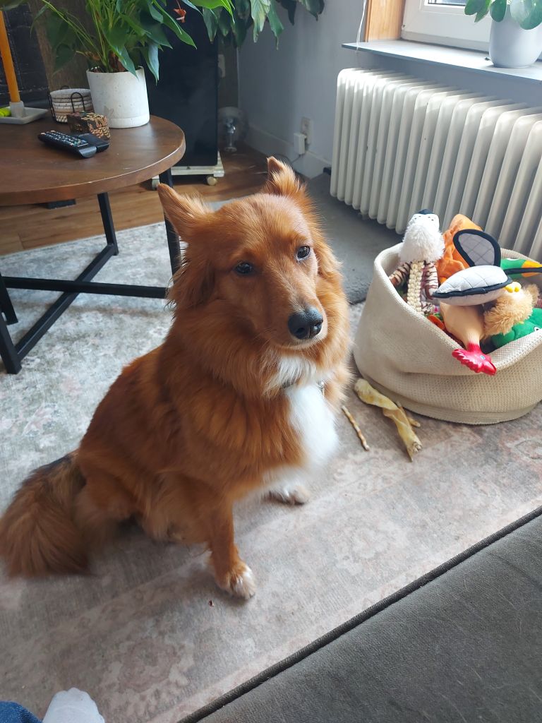 Hi, ik ben Millie! Ongeveer 3 jaar oud. Ik hou van spelen met de bal en lange wandelingen. Ik ga goed om met kinderen, katten en andere honden