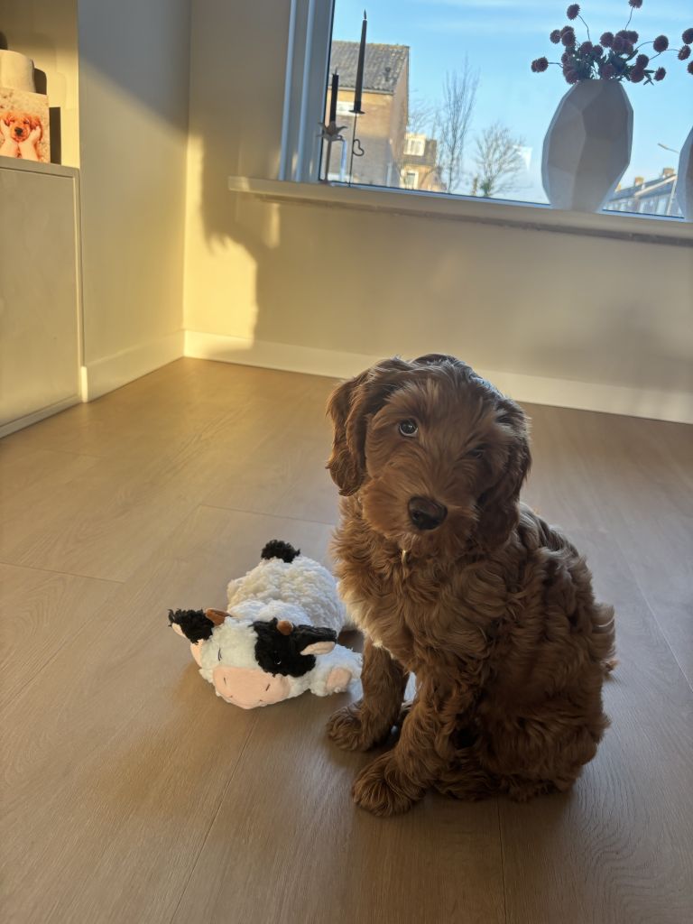 Milo mag nog niet ver lopen ivm zijn leeftijd en kan ook nog niet lang alleen thuis zijn.