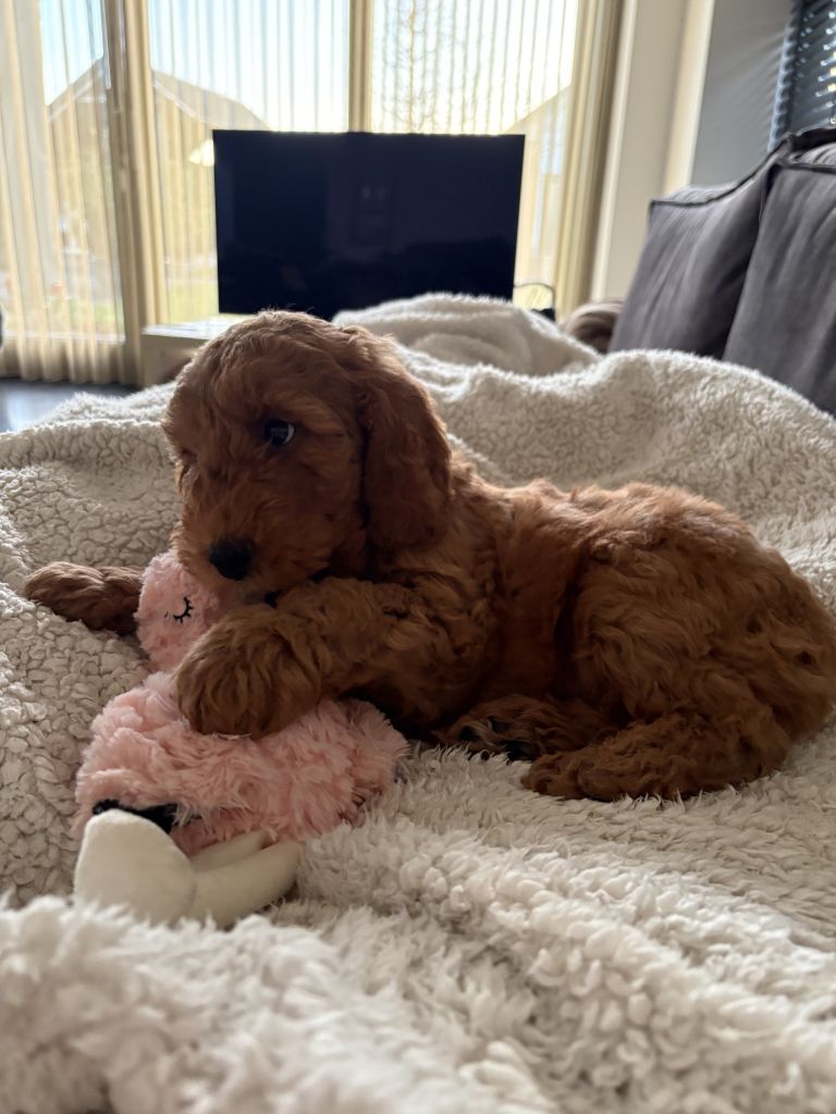 Hi, ik ben Milo! Ongeveer 2 maanden oud. Ik hou van korte wandelingen en spelen met de bal. Ik ga goed om met kinderen en andere honden, maar ik hou niet zo van katten.