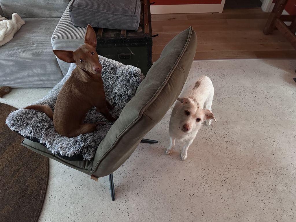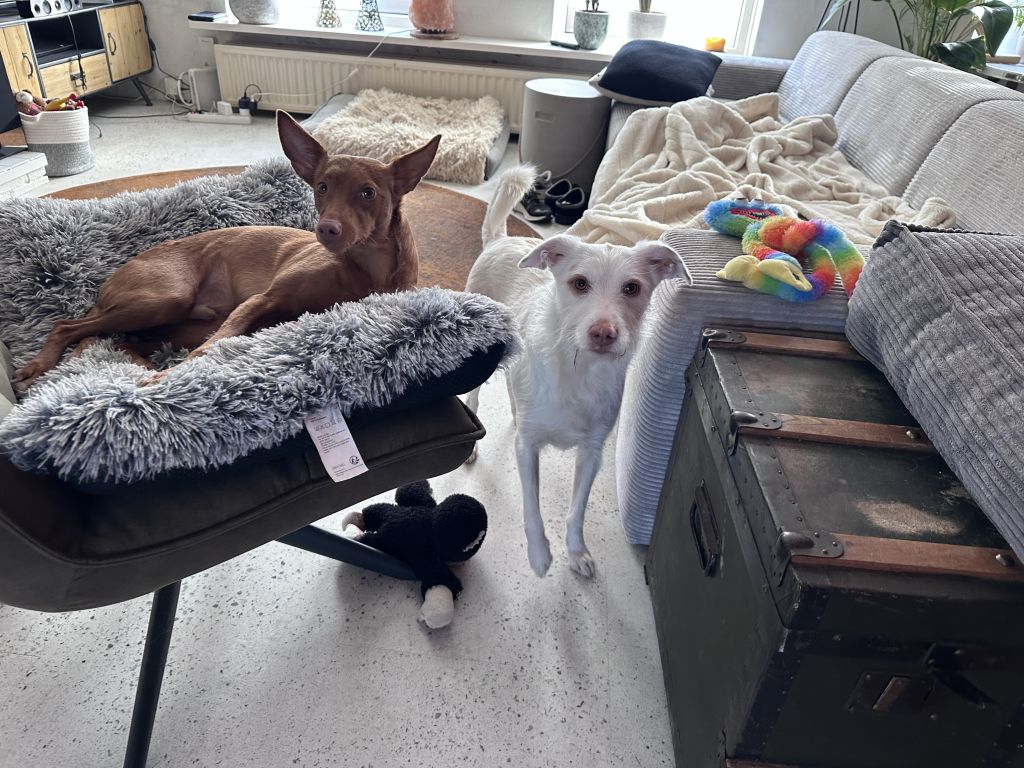 Ik heb 2 hondjes, Milo en Paco, beide gecastreerde reutjes. Milo (bijna 4 jaar) komt uit Portugal, en Paco (2,5 jaar) uit Spanje. Ze zijn beide heel lief, maar ook eigenwijs, typische Podenco’s. Los lopen kan alleen op een veilig gebied, vanwege jachtinstict. Milo loopt prima aan de lijn, Paco is nog aan het wennen (ik heb hem pas een half jaar) maar het zijn geen grote sterke honden die je omver trekken.
