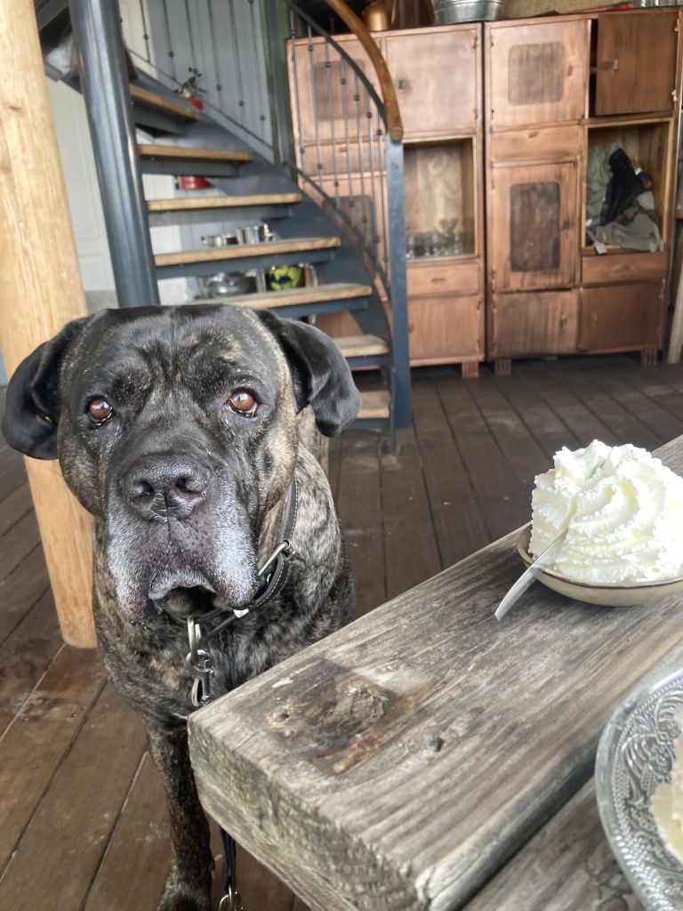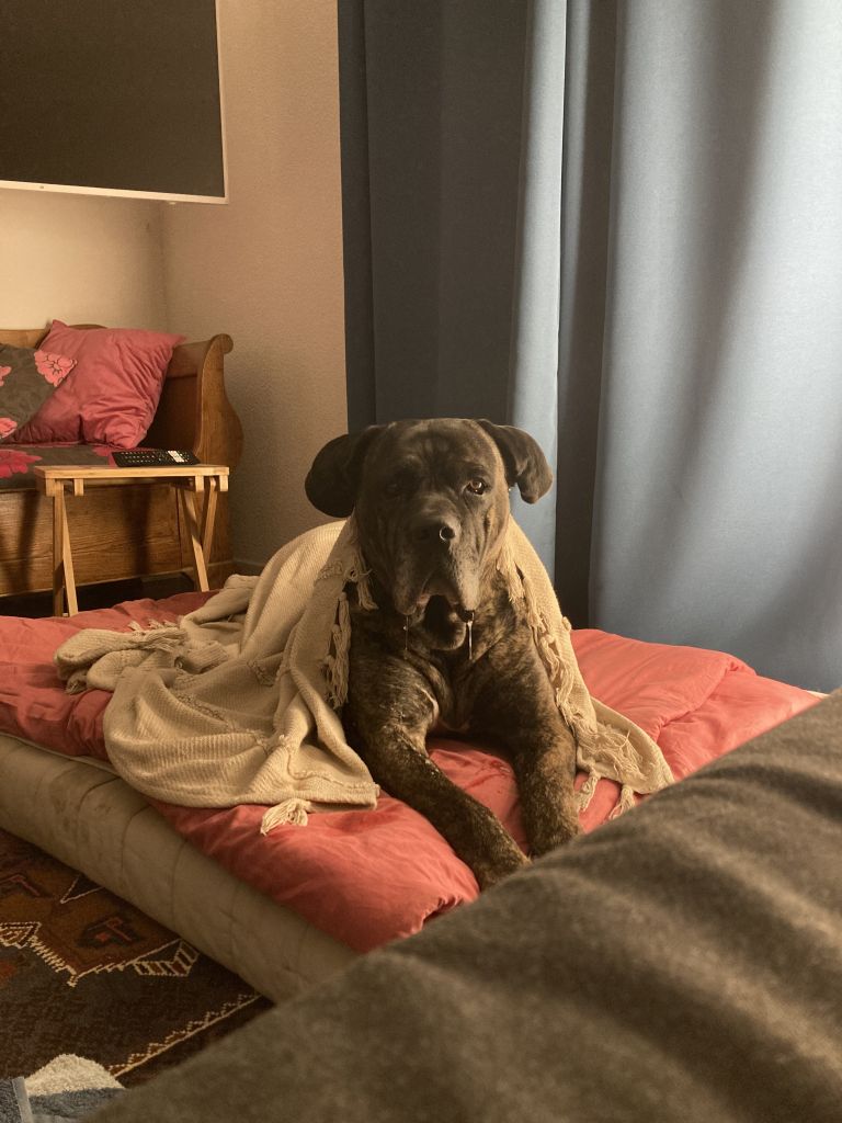 Ze vindt jonge kinderen (die ze niet kent) spannend en ze kan geen appartement met trappen op,- en af. Ze ligt heel graag in de zon te chillen of kauwen op een bot.