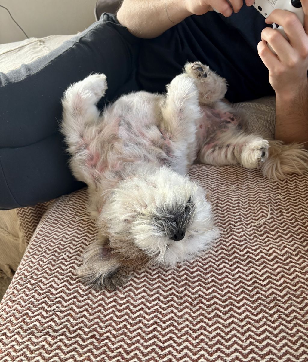 Molly heeft een voedselallergie waardoor ze heel veel jeuk heeft en uitslag. Ze is erg gefocust wat er op de grond kan liggen en schrokt dit snel naar binnen. Ook eet ze soms witte doekjes van de grond….