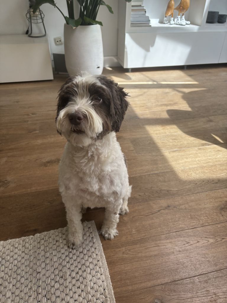 Moos is een hele lieve en vrolijke hond, ze houdt van knuffelen en wandelen! Ze is zo lief dat ze nog nooit gegromd heeft. Af en toe is ze iets te lief/zachtaardig en is ze een beetje angstig voor grote honden! Als we met haar wandelen krijgen we veel aandacht, veel mensen worden enthousiast van haar gekwispel!