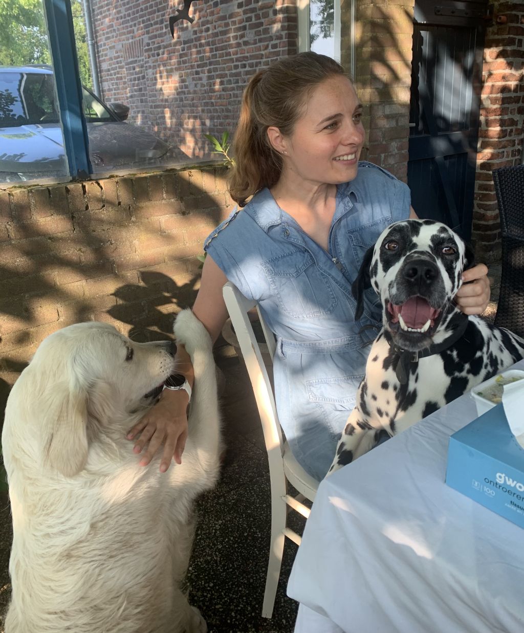 De honden op de foto zijn helaas niet van mij en wonen te ver weg om regelmatig mee te wandelen. Zelf heb ik geen tijd en ruimte voor een hond (zou ik wel graag hebben) dus als ik iemand kan helpen door af en toe de hond uit te laten doe ik dat met veel plezier. Ik hou van honden en van buiten zijn, een groot deel van mijn jeugd hadden wij een hond (een dalmatiƫr) dus ik ben er meer dan aan gewend. Ik loop graag langs het water in de buurt van de Piushaven, ik wandel sowieso 3-5 x per week anderhalf uur, vaak later in de middag of begin avond dus dan kan ik makkelijk een hond mee laten lopen. Wel zo gezellig!