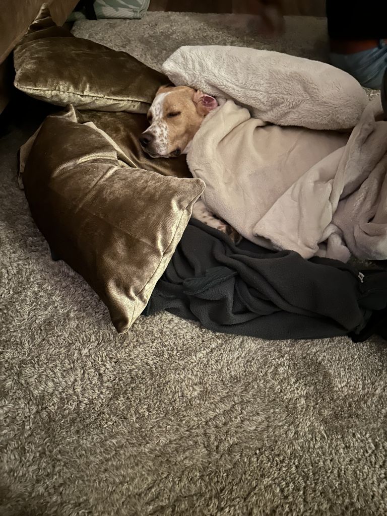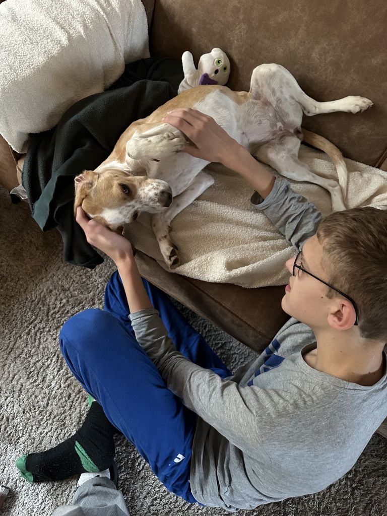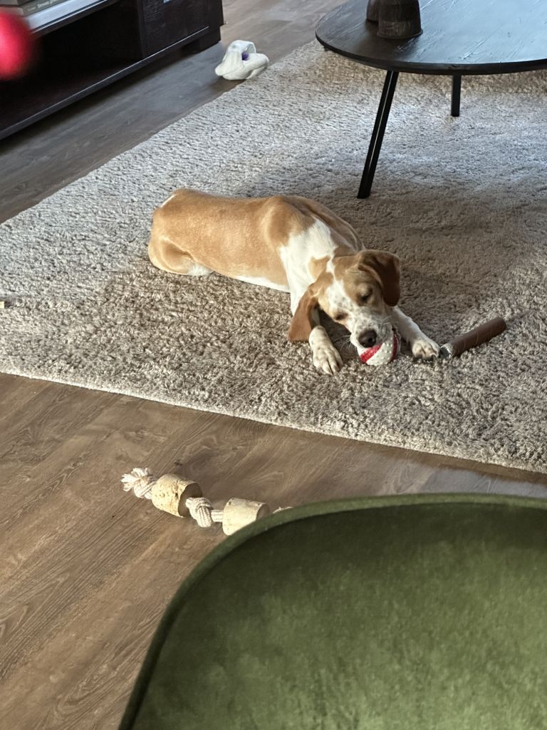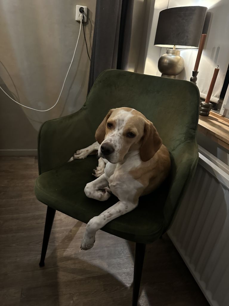 Hi, ik ben Nibbels! Ongeveer 8 maanden oud. Ik hou van korte wandelingen en lange wandelingen. Ik ga goed om met andere honden en kinderen, maar ik hou niet zo van katten.