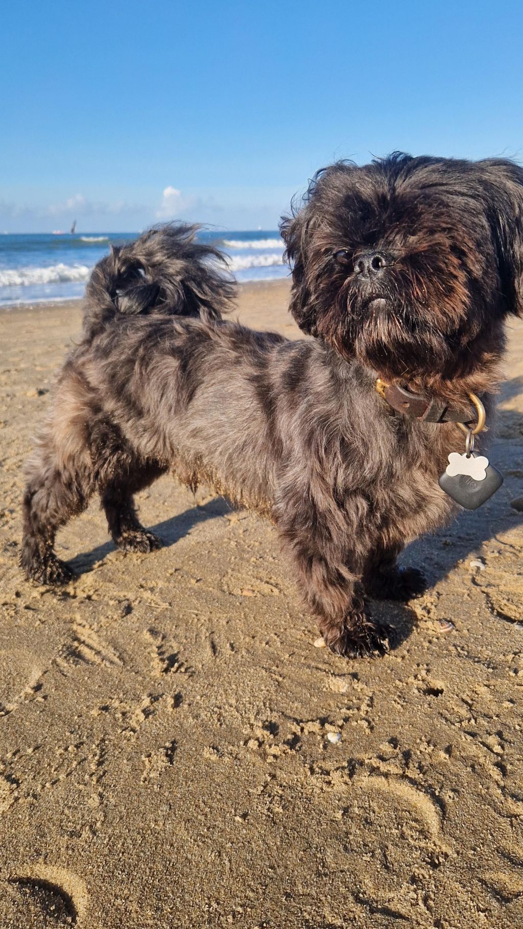 Ted is een lieve hond, hij luistert goed en kan goed loslopen en spelen met andere honden. Het is wel belangrijk dat je verantwoordelijkheid voelt om gevaarlijke situaties uit de weg te gaan aangezien hij maar één oog heeft en op drukke plekken wat angstig kan zijn.