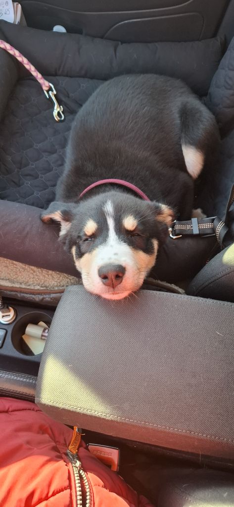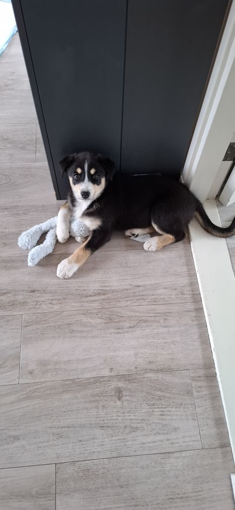 Ze is een kruising tussen een Australian Shepherd (vader) en een Husky x Kuvasz (moeder) en wordt ukteindelijk waarschijnlijk tussen de 25 en 30kg.