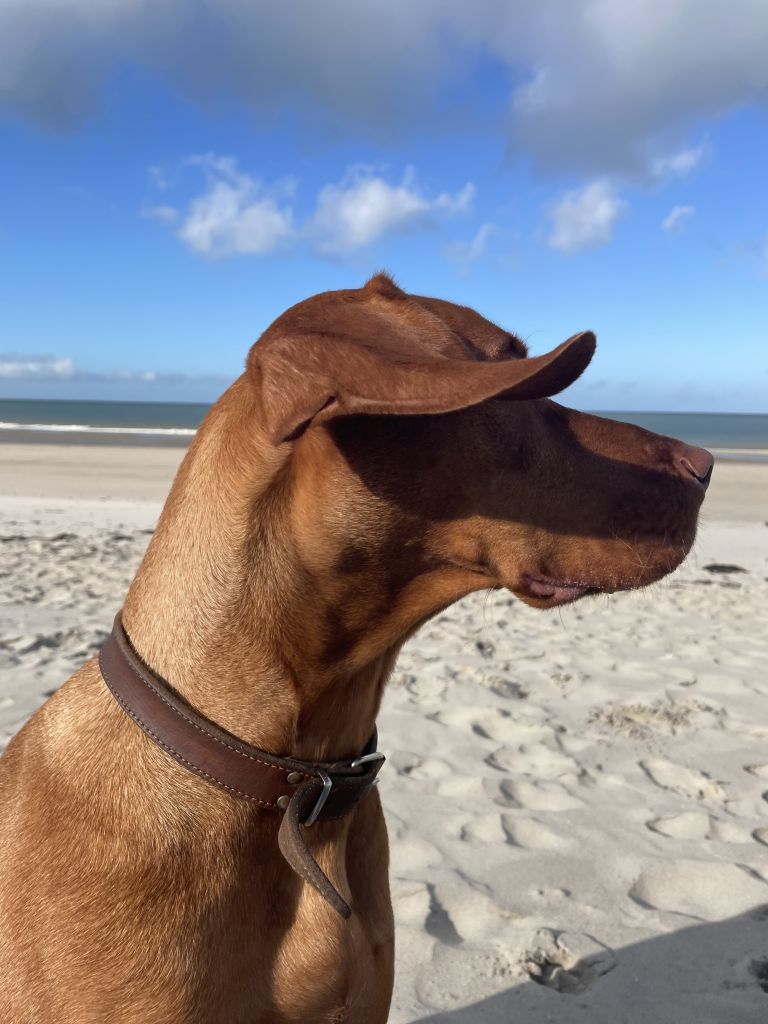 Het liefst loopt hij los in het bos of rond het water zoals de Galderse Meren en hij vindt het heerlijk om te spelen met andere honden.