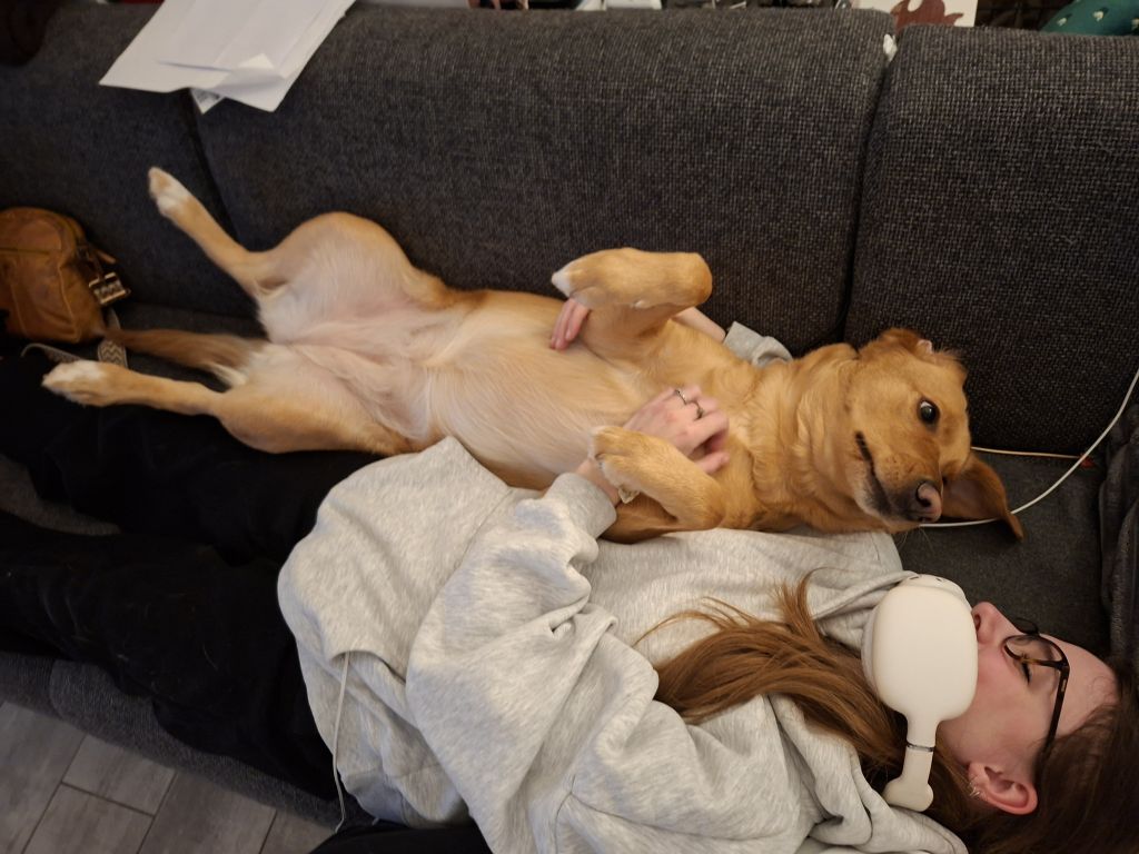 Peaches is een lieve enthousiaste hond die het buiten heerlijk vind. Ze is onderdanig naar de meeste honden toe maar soms vind ze er ook een keer 1 niet leuk.