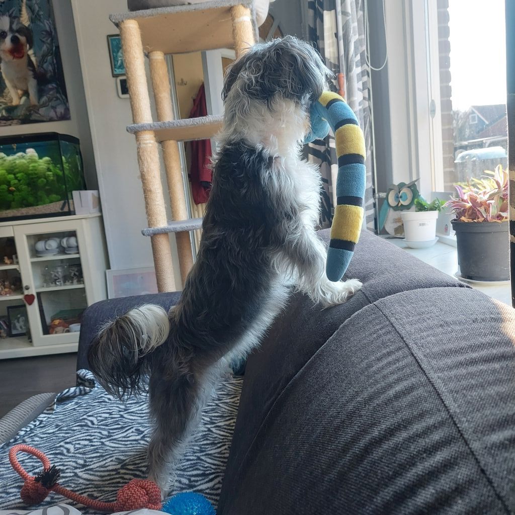 Gelukkig heb ik wel een grote tuin waar ze, door haar hondenluik, vrij in en uit kan om lekker te donderjagen.