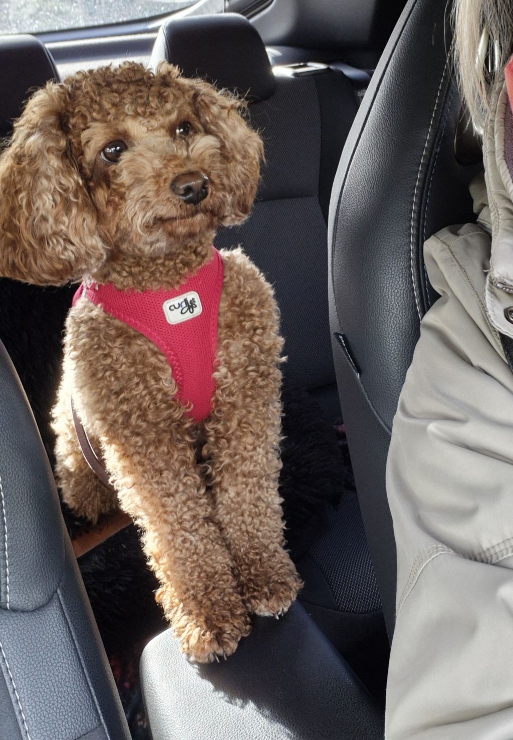 Ze houdt van autorijden en vindt andere, m.n. kleine honden, heel gezellig.....honden die heel druk zijn en op haar af rennen ( groot en klein) vindt ze spannend.