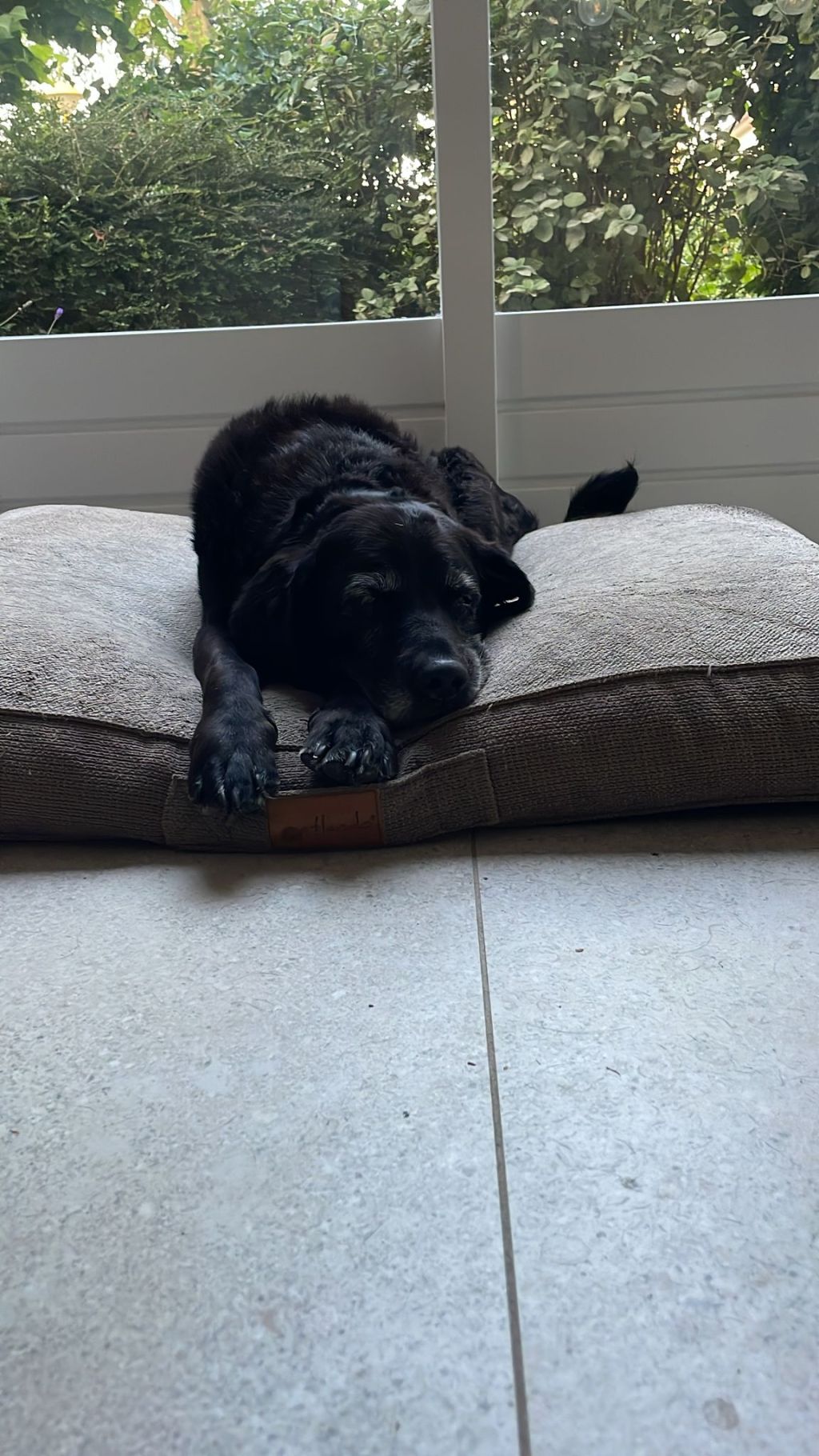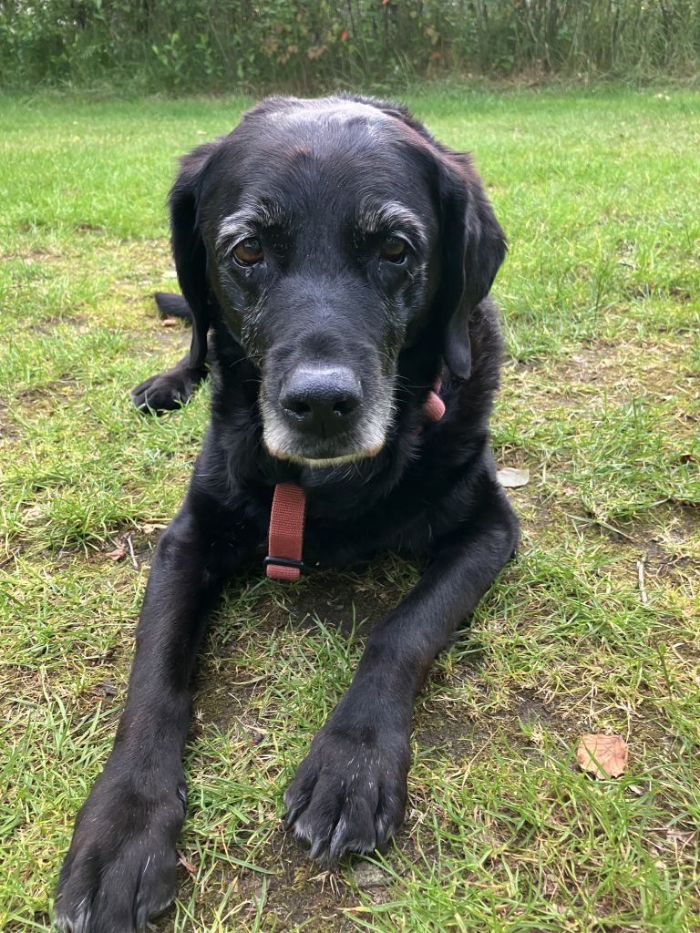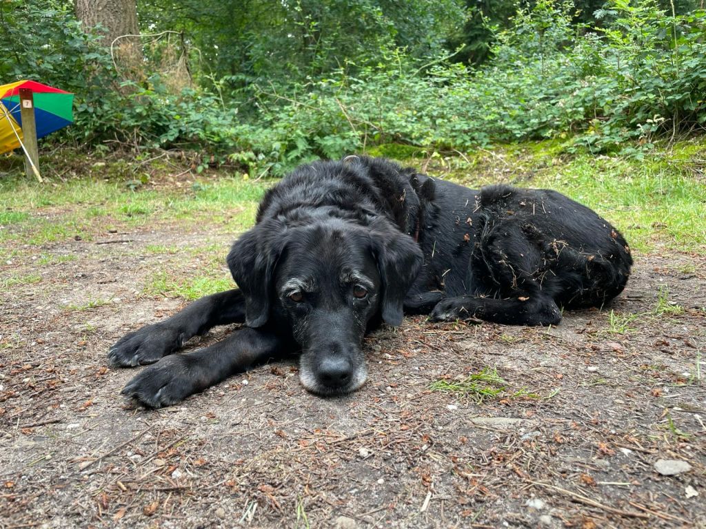 Sam is een oude hond , heel lief , loopt nog kleine stukjes buiten veel snuffelen. Sam vindt het heerlijk om in je omgeving te zijn een aaitje te krijgen , zij is geen kinderen meer gewend, katten die gewend zijn aan honden vindt sam ook prima. Niet meer echt spelen anders krijgt ze last van haar pootjes