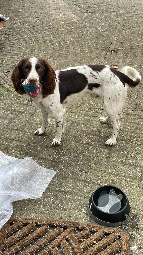 Hi, ik ben Sammy! Ongeveer 1 jaar oud. Ik hou van spelen met de bal, korte wandelingen en lange wandelingen. Ik ga goed om met kinderen en andere honden, maar ik hou niet zo van katten.