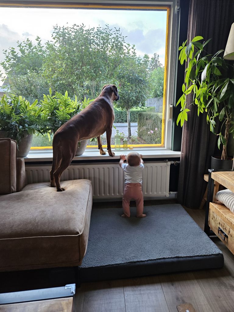 Vanwege onze dochter van 9 maanden hebben we minder tijd om lang met haar te lopen. En een boxer heeft wel veel beweging nodig.