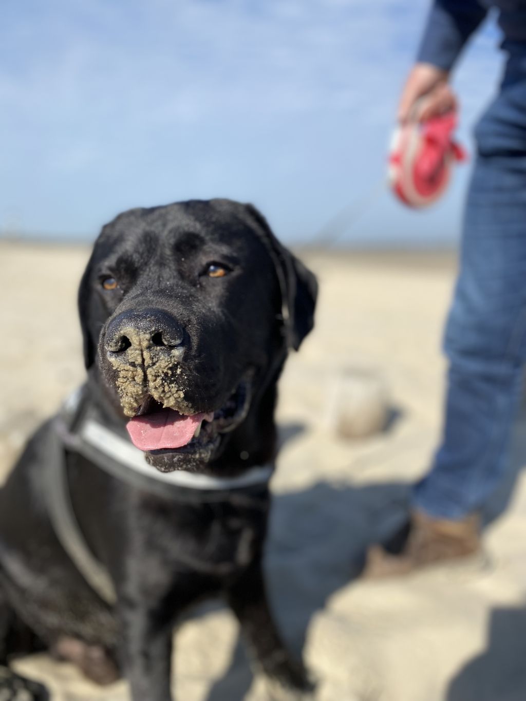 Hij is makkelijk om uit te laten en trekt niet aan de lijn. Als hij andere honden ziet kan hij wat enthousiast zijn.