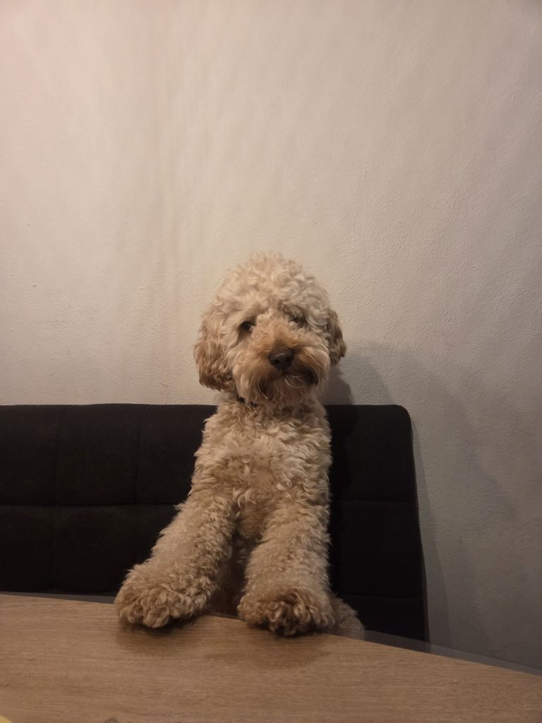Simba is een mini labradoodle en heeft dus jachtinstinkt in het bloed. Dus achter een kat aanrennen is dan ook super leuk. Zelf hebben we 2 gerbils en die negeert hij nu dus als hij eraan is gewend dan komt het vast goed.