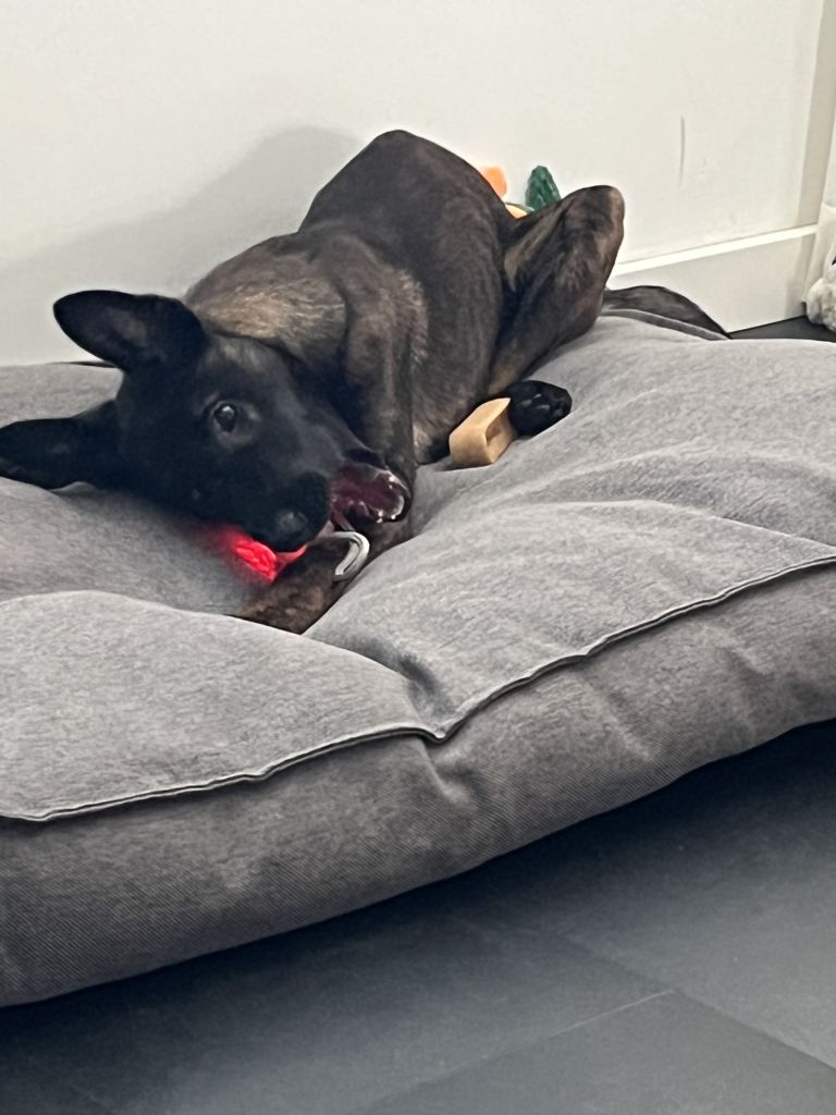 Ik ben binnen heerlijk rustig, speel soms wat of doe spelletjes met Stan. Buiten loop ik goed mee aan de riem en trek meestal niet. Stan geeft mij al veel vrijheid, zover ik deze aankan en mag ik los lopen waar het kan. Andere honden vind ik erg leuk al kan ik soms nog druk en lomp zijn. Maar wanneer de andere honden los zijn dan kan ik echt heel fijn spelen. Ik luister goed wanneer ik terug moet komen, behalve wanneer ik net een vogeltje of ander hondje zie…… ( pubertijd 😊)